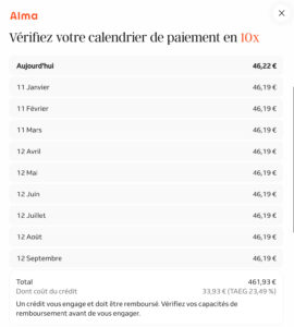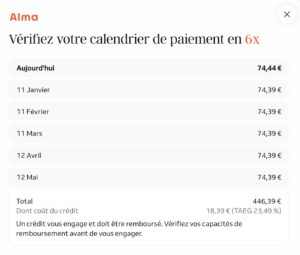 Avec Alma, nous vous offrons la possibilité d’étaler votre paiement en payant en plusieurs fois. C’est simple et sécurisé !