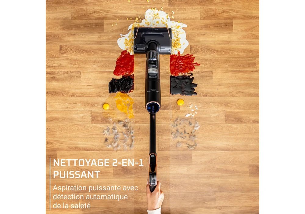 • Nettoyage 2-en-1 : aspire et lave simultanément