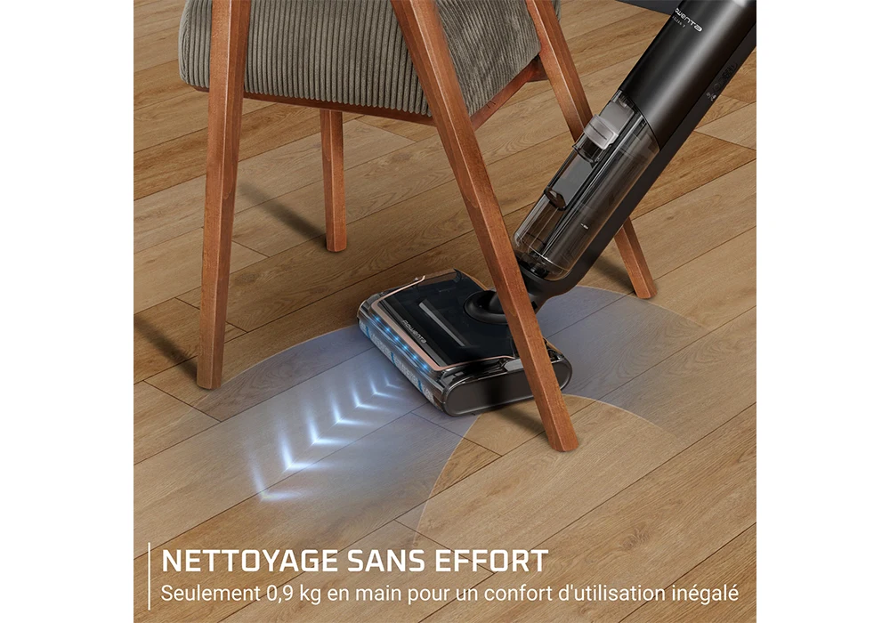 Avec le X-Clean 7, plus besoin d’enchaîner aspirateur et serpillière. Il aspire et lave simultanément, éliminant aussi bien les poussières que les saletés humides.
