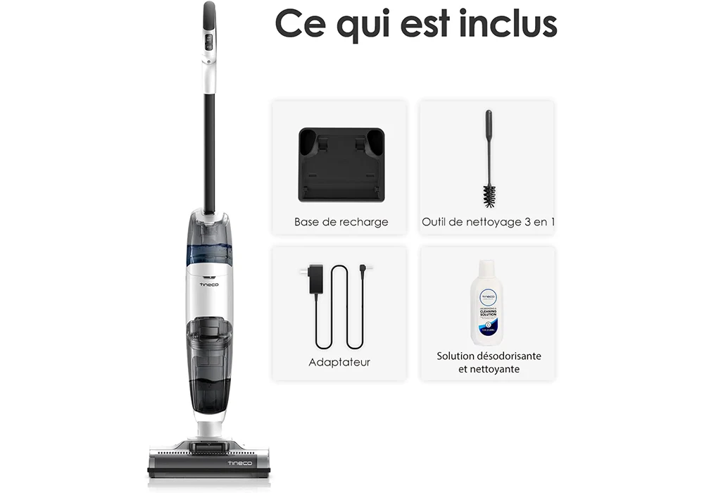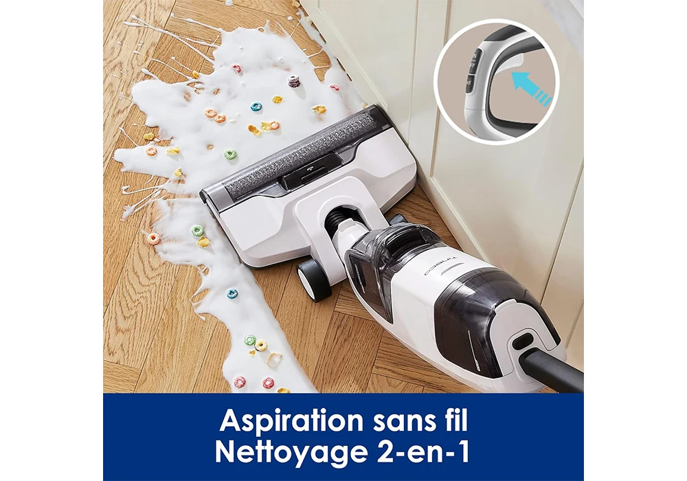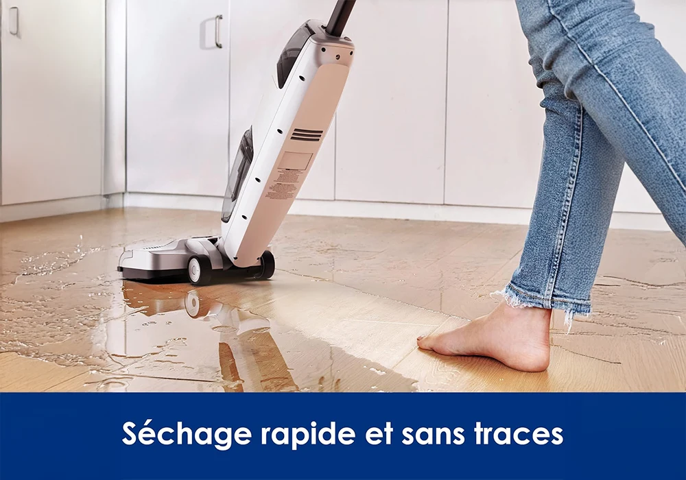 - Gagnez du temps : un seul passage pour aspirer et laver vos sols sans effort.