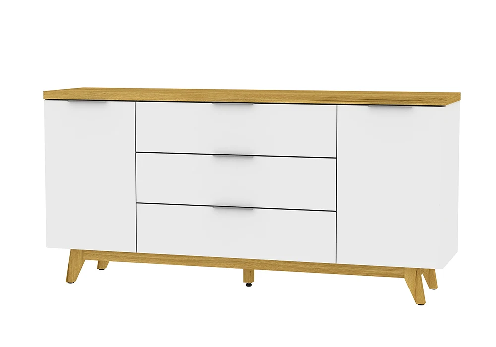 Composé de 2 portes et 3 tiroirs, ce meuble enfilade de style scandinave offre une grande capacité de rangement que ce soit dans votre salon ou votre chambre à coucher. Ajoutez-y un miroir ou une plante pour sublimer l’ensemble et en faire un élément de décoration à part entière.