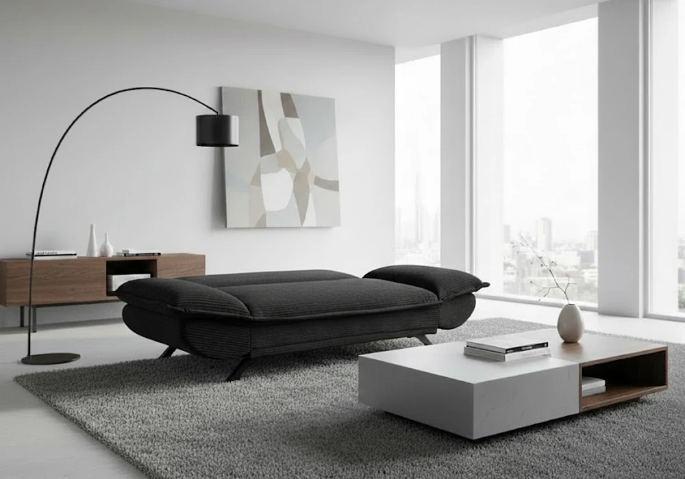 Son revêtement en tissu côtelé doux procure un toucher chaud et agréable, tout en étant facile d’entretien, idéal pour une utilisation régulière. L’assise confortable, associée à un dossier généreux, garantit un bon maintien aussi bien en position assise qu’en position couchage.