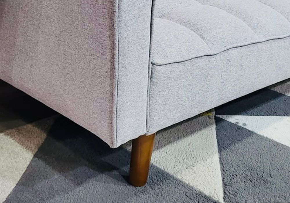 Structure en BOIS D’EUCALYPTUS, assise mousse en polyuréthane, matelas HD 25kg, recouvert d’une housse en tissus polyester coloris gris.