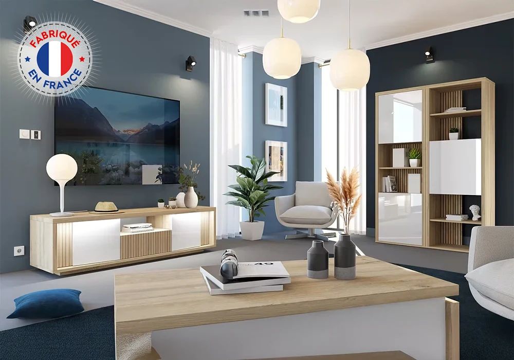 L’absence de poignées visibles accentue la pureté des lignes, tandis que sa fabrication française garantit une durabilité exemplaire et une qualité perçue haut de gamme.