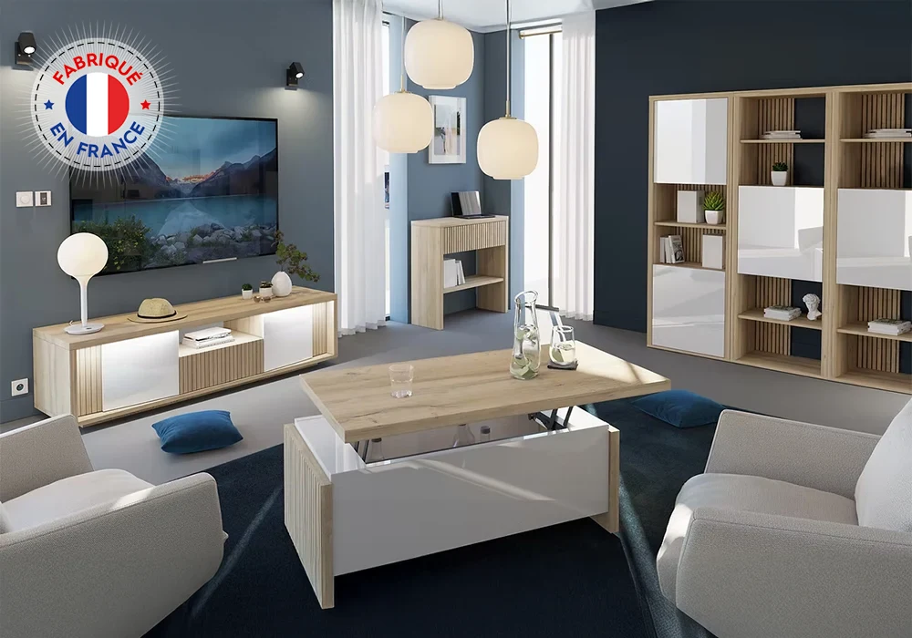 L’absence de poignées visibles accentue la pureté des lignes, tandis que sa fabrication française garantit une durabilité exemplaire et une qualité perçue haut de gamme.