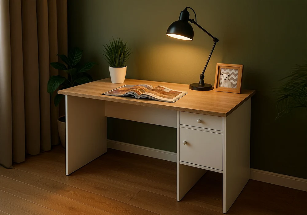 Doté d’une porte et d’un tiroir spacieux, ce bureau offre un rangement optimal pour vos documents, fournitures et autres accessoires de travail. Sa structure robuste et son esthétique soignée en font un choix parfait pour allier fonctionnalité et style dans votre bureau ou chambre.