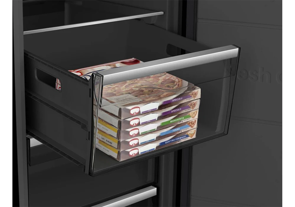 Pensé pour un usage pratique au quotidien, ce congélateur dispose d’un intérieur bien organisé avec plusieurs tiroirs et étagères, facilitant le rangement et l’accès à vos aliments. Son éclairage LED, ses commandes électroniques et son alarme de porte ouverte apportent confort et sécurité d’utilisation.
