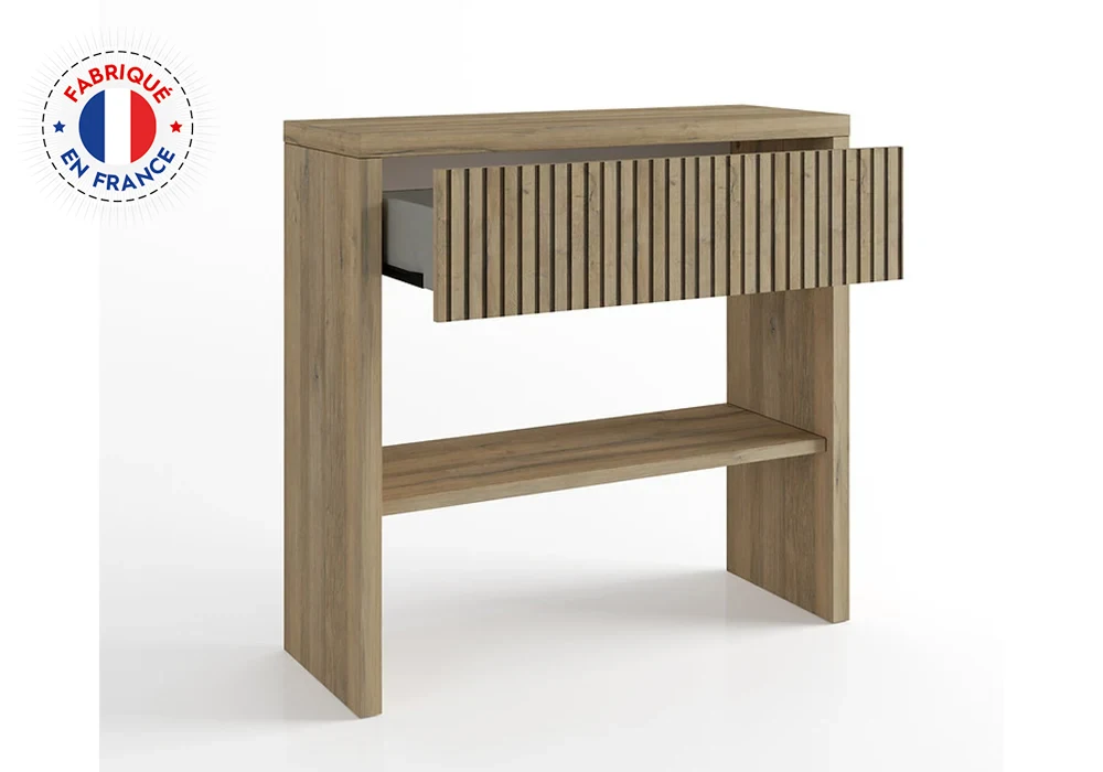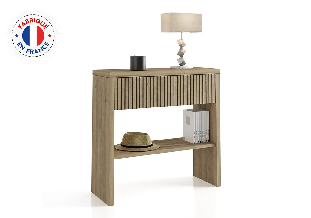 La console 1 tiroir CASTEL est une pièce incontournable pour toute décoration intérieure moderne. Avec ses 94 cm de longueur, elle offre une solution de rangement pratique et discrète, idéale dans une entrée, un séjour ou un bureau. Son tiroir intégré permet de garder à portée de main vos essentiels tout en préservant l’esthétique de votre espace.