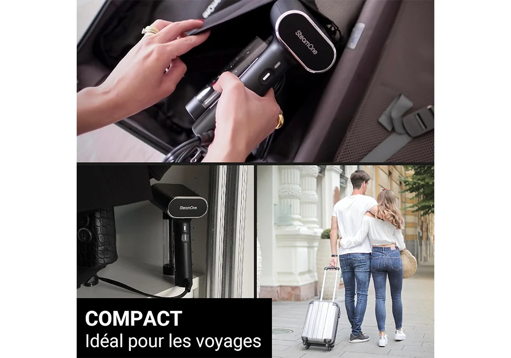 Facile à transporter et à ranger, le SteamOne EUNS150B se glisse parfaitement dans un placard, une penderie ou une valise. Il est idéal pour la maison, les voyages, le bureau ou le dressing.