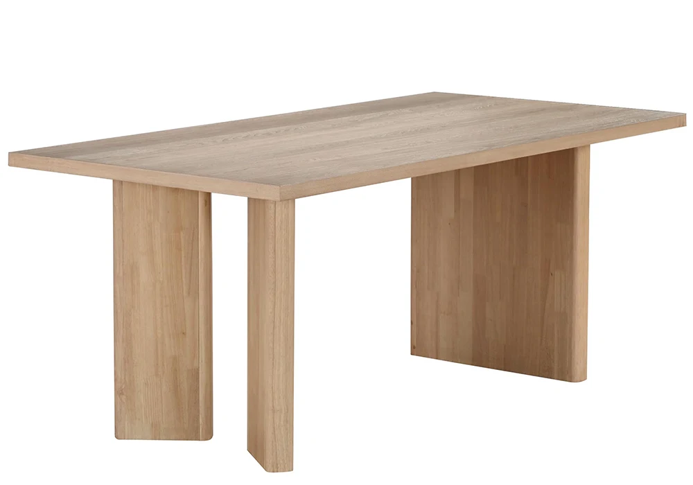 La table à manger, au plateau généreux, repose sur une structure en panneau de particules habillée d’un papier décor chêne. Ce fini bois naturel apporte chaleur et authenticité à votre intérieur, tout en garantissant une excellente stabilité.