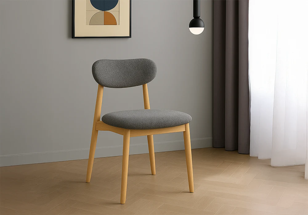 Les chaises, aux lignes épurées, sont garnies de mousse polyuréthane pour une assise douce et soutenue. Leur revêtement en tissu, lumineux et intemporel, s’harmonise avec tous les styles décoratifs.