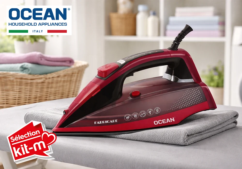 Le fer Ocean Fabricare adopte un design compact et ergonomique facilitant la prise en main.