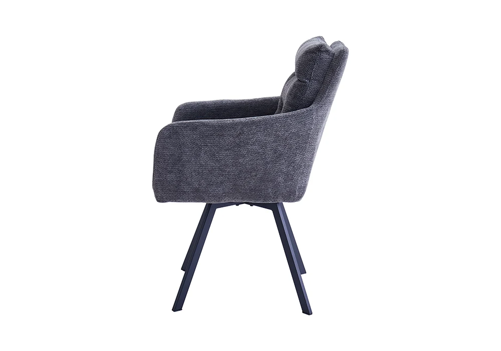 Le dossier capitonné avec accoudoirs intégrés apporte un excellent maintien, permettant une assise confortable même lors de longues utilisations. Le piètement métallique renforce la stabilité tout en soulignant le style contemporain de l’ensemble.