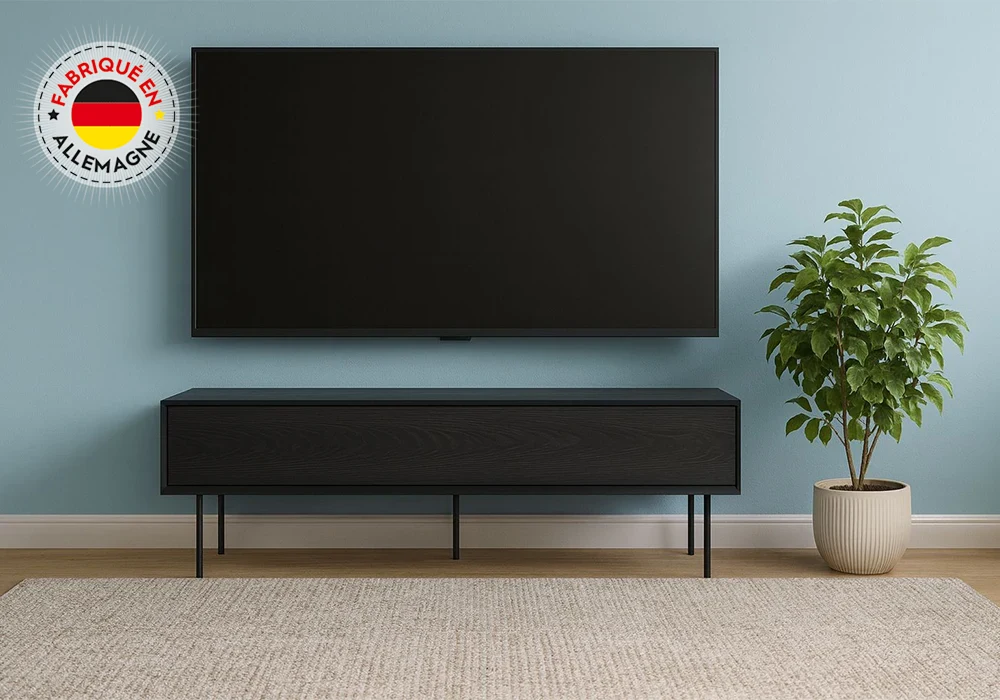 Conçu selon une qualité de fabrication allemande, le meuble TV STREAM garantit robustesse, durabilité et finitions impeccables. Il constitue le choix idéal pour créer un espace audiovisuel esthétique, fonctionnel et résolument moderne.