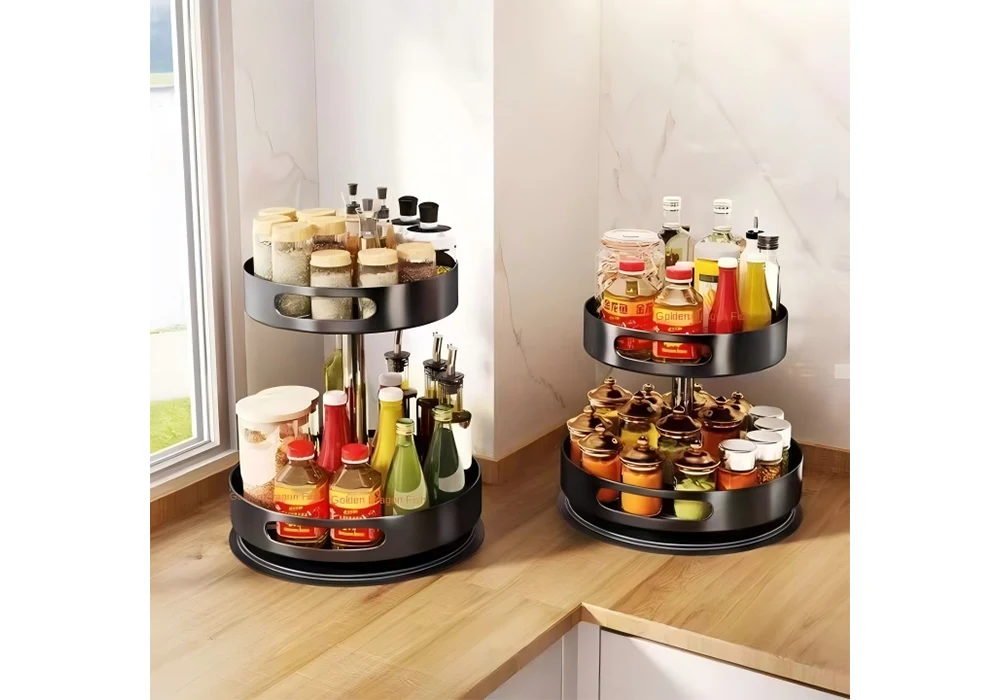 Optimisez l’espace de votre cuisine avec cet organisateur rotatif 360° en métal noir, conçu pour offrir un accès rapide et un rangement parfaitement structuré. Grâce à sa rotation fluide, il permet d’attraper facilement épices, huiles, sauces et condiments sans déplacer l’ensemble, rendant votre quotidien plus pratique et organisé.