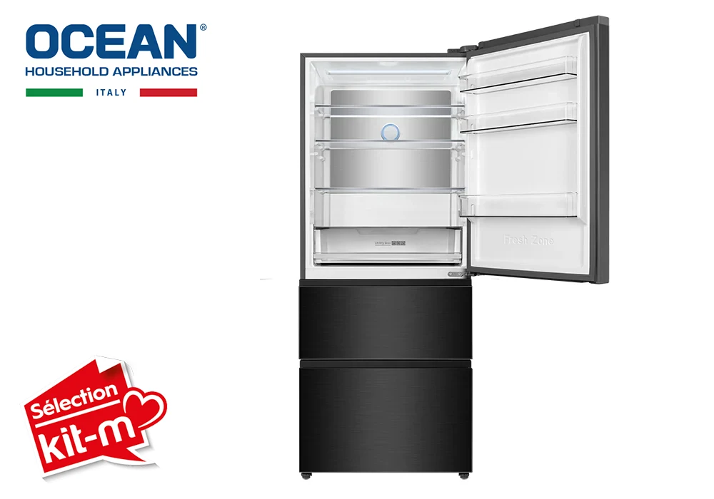 Avec ses 420 litres, sa technologie No Frost et son compresseur Inverter, il assure une conservation optimale des aliments, tout en restant silencieux et économe en énergie. Sa finition Dark Inox lui confère un design élégant et contemporain.