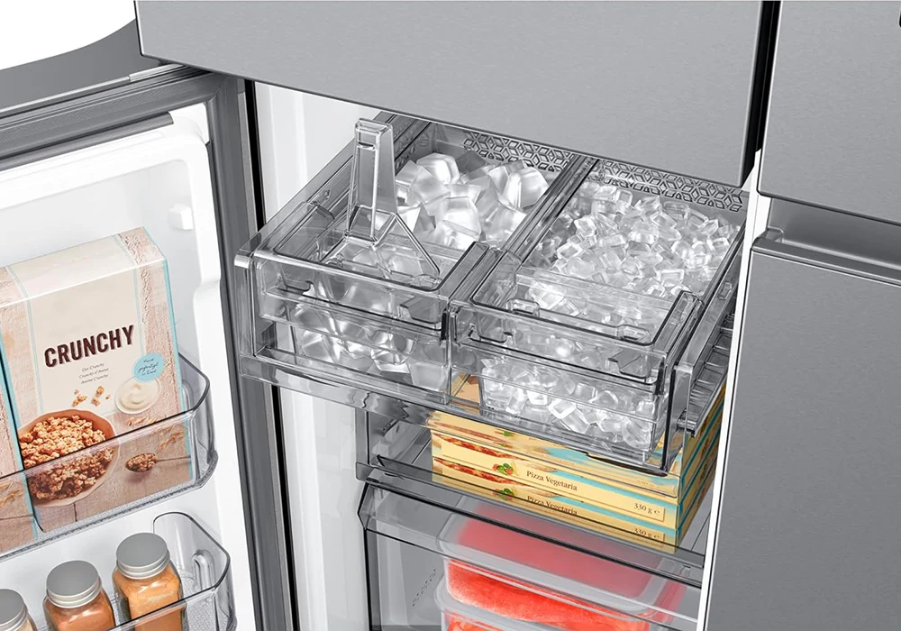 Son immense capacité de 636 litres et son format French Door offrent un espace intérieur optimisé et modulable, parfait pour les grandes familles ou les amateurs de batch cooking. Grâce à la technologie Triple Cooling, chaque compartiment (réfrigérateur, congélateur et zone convertible) bénéficie d’un circuit indépendant, garantissant une température stable, sans mélange d’odeurs ni givre.