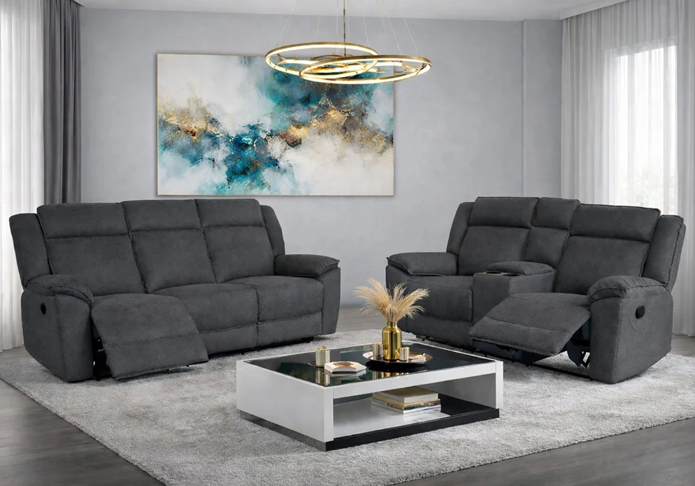 Salon Canapé 3 Places Relax Électrique + Canapé 2 Places Relax Avec Console Centrale Lolita