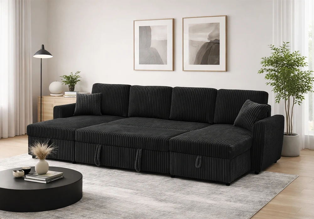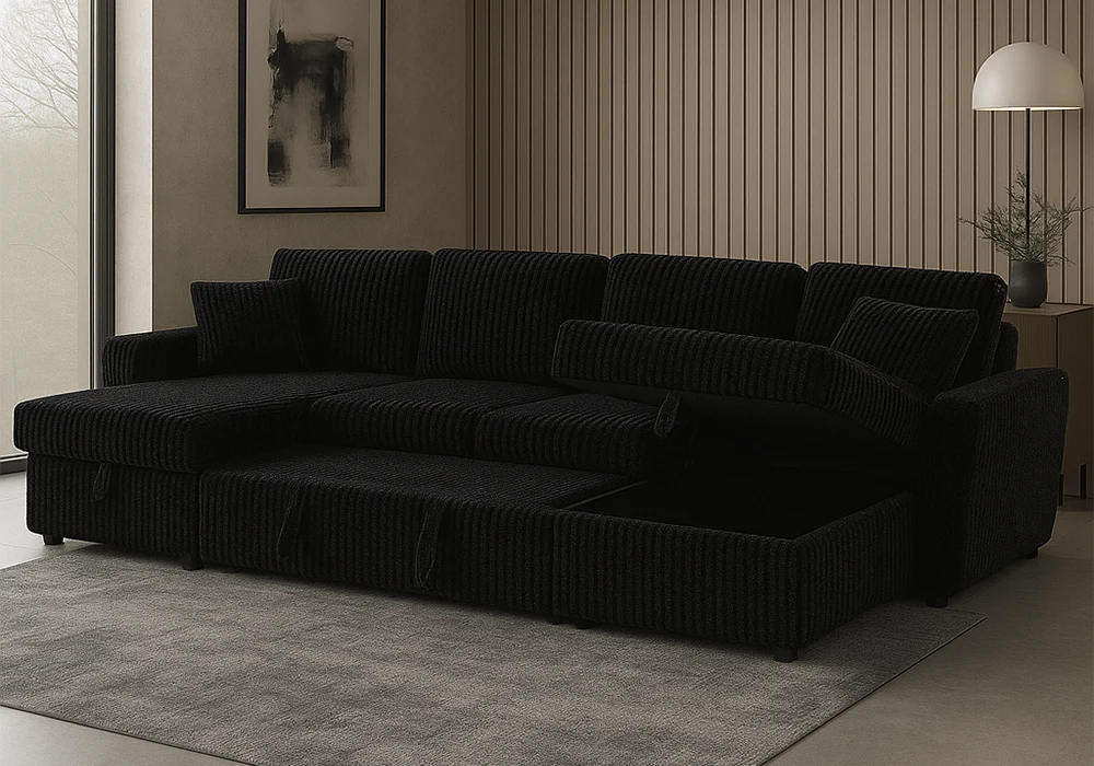 Salon d’Angle Convertible Panoramique DALIA Noir