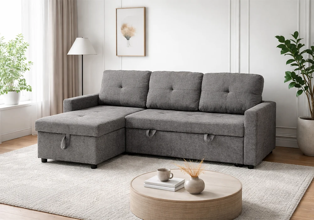 Salon d’Angle Convertible Reversible Elite Gris Clair