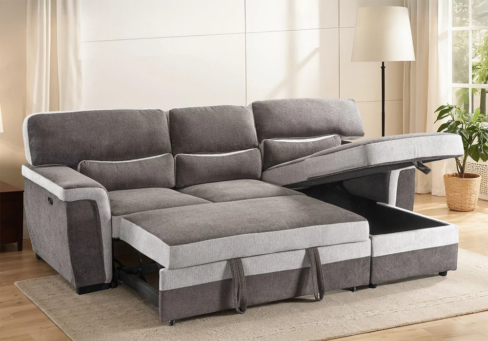 Le salon ELSA se convertit en lit en quelques secondes, offrant un couchage d’appoint idéal pour accueillir vos proches. Il est également équipé d’un coffre de rangement intégré sous la méridienne, parfait pour ranger plaids, oreillers ou accessoires du quotidien.