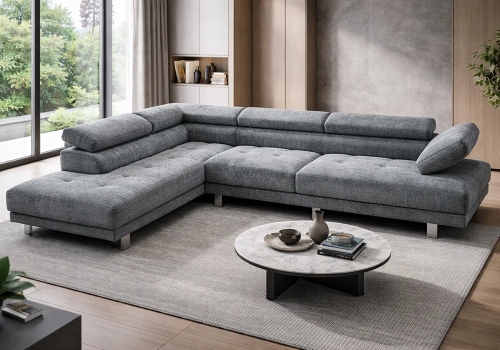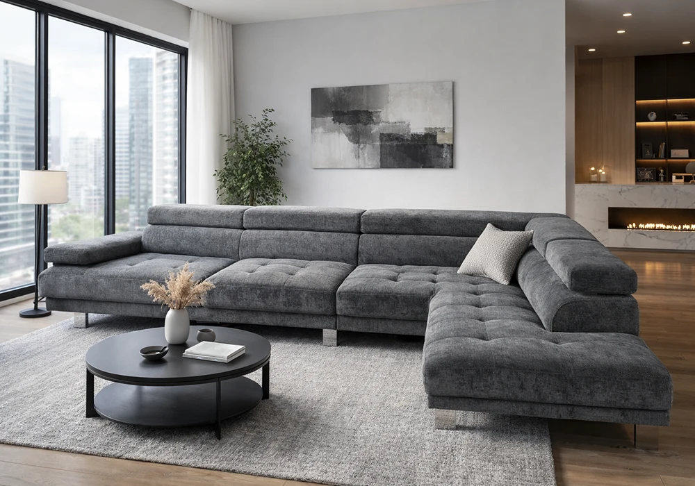 - Salon d’angle panoramique moderne avec des têtières et bras réglables