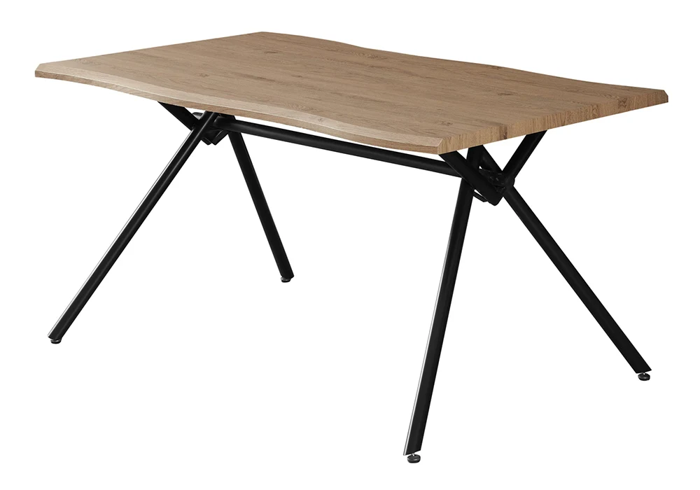 La structure de la table est réalisée en MDF recouvert de papier coloris chêne clair, offrant un rendu chaleureux et lumineux. Son plateau à chants naturels apporte une touche authentique et tendance, rappelant l’aspect du bois massif. Le piètement en métal noir assure une excellente stabilité tout en renforçant le caractère contemporain de la table.