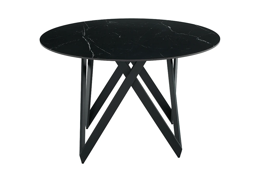 Son plateau en céramique effet pierre noir offre une excellente résistance aux rayures et à la chaleur, tout en étant facile à entretenir au quotidien. Le piétement en métal coloris noir assure une structure robuste et une stabilité optimale, tout en apportant un contraste contemporain très tendance.