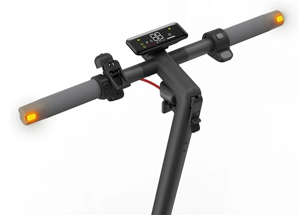 La trottinette intègre également des feux avant, feu stop et clignotants, améliorant la visibilité et la sécurité lors des déplacements de nuit ou dans la circulation.