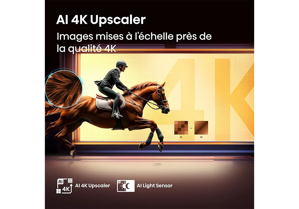 Associée à la résolution 4K Ultra HD (3840 × 2160), elle offre une image détaillée et immersive, avec des contrastes améliorés et une luminosité homogène.