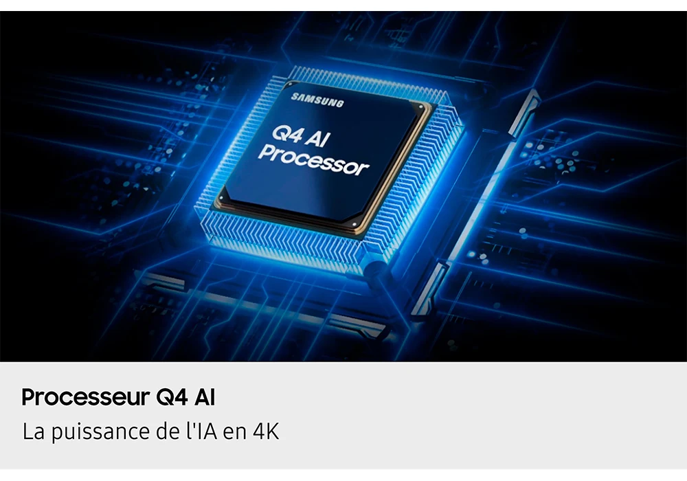 Grâce à la technologie QLED (Quantum Dot), les couleurs sont plus riches, plus lumineuses et plus durables, tandis que la résolution Ultra HD 4K révèle chaque détail avec précision. Le HDR améliore les contrastes pour des scènes plus réalistes et immersives.